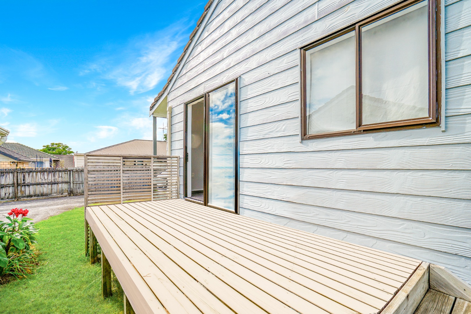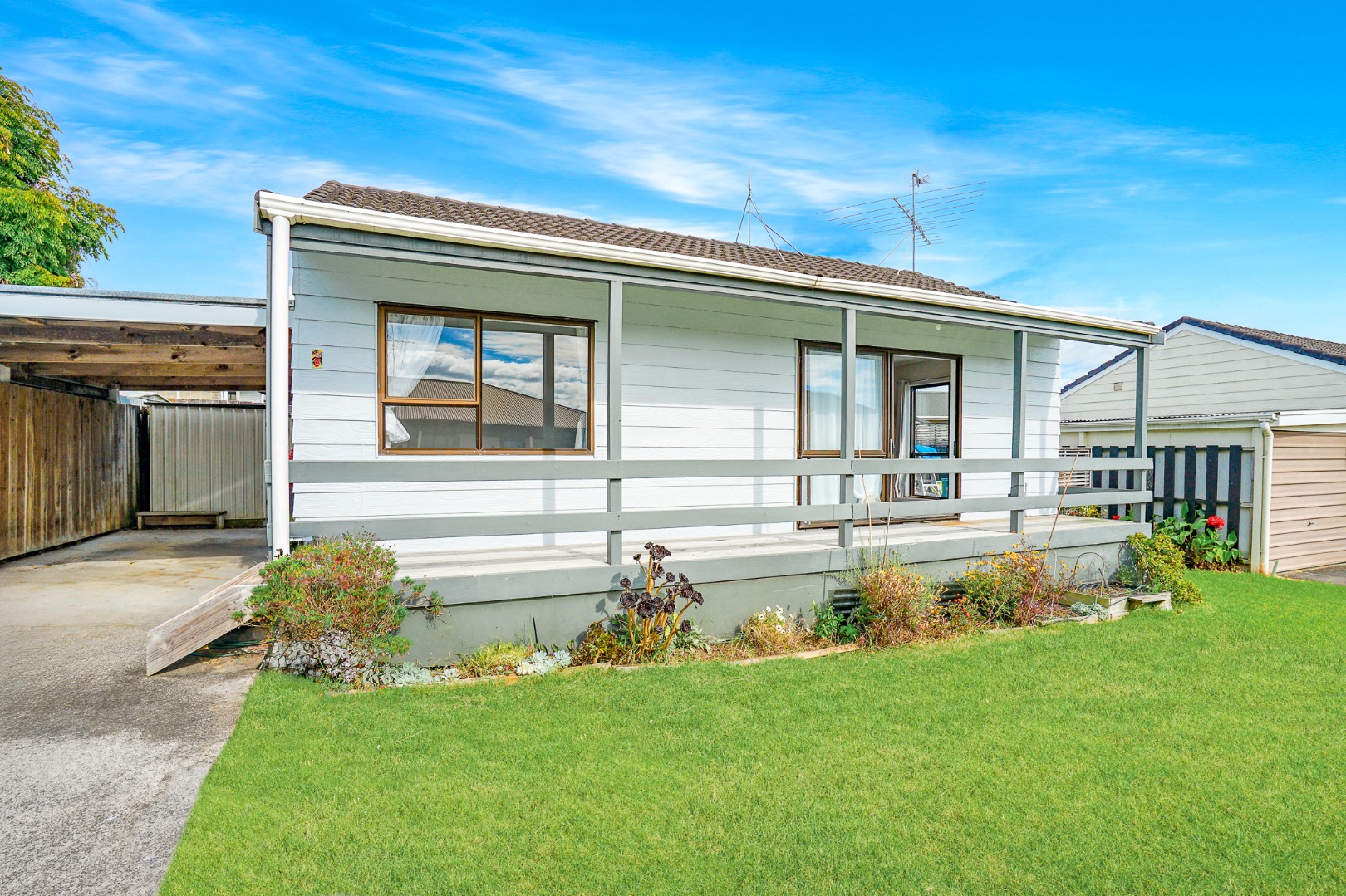At the other end of the home, you'll find two well-sized bedrooms. A small deck sits off the side of the lounge, offering the perfect spot to enjoy a morning coffee or unwind at the end of the day.